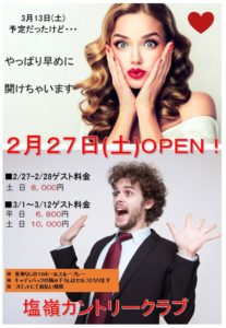 スループレーで2月27日OPEN! 2021年2月23日 ◆18ホールスループレー ◆バッグの積み降ろしもセルフとなります 2月ゲスト料金 8,000円 3月1日~3月12日ゲスト料金 平日 6,800円 土日10,000円