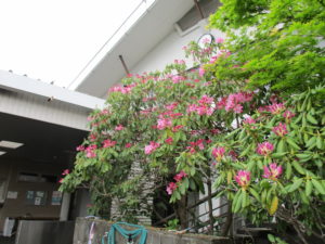 塩嶺の石楠花 2019年5月29日 遅咲きながら、塩嶺マスター室前のシャクナゲが満開です (^^)/ 咲かない年もあるのですが、 ここ数年連続開花です (^_-)-☆ 華も立派で色も濃く、一見の価値はありますよ。 レストランから見下ろすように、マスター室の靴洗い場から 見上げるように。 表情豊かな季節の草花を観察するのも面白いですよ (^^♪ 編集・H