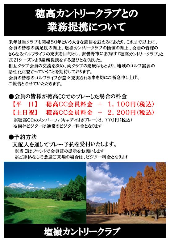 穂高カントリークラブとの業務提携について