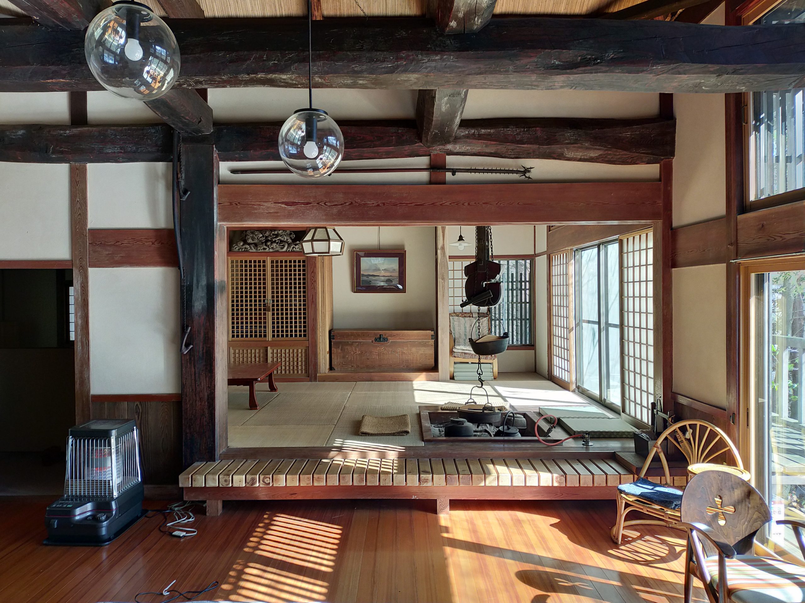 長野県塩尻市内にある囲炉裏を備えた古民家風貸別荘です。