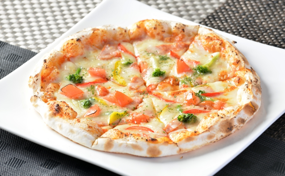 季節の野菜を使った窯焼きピザです。